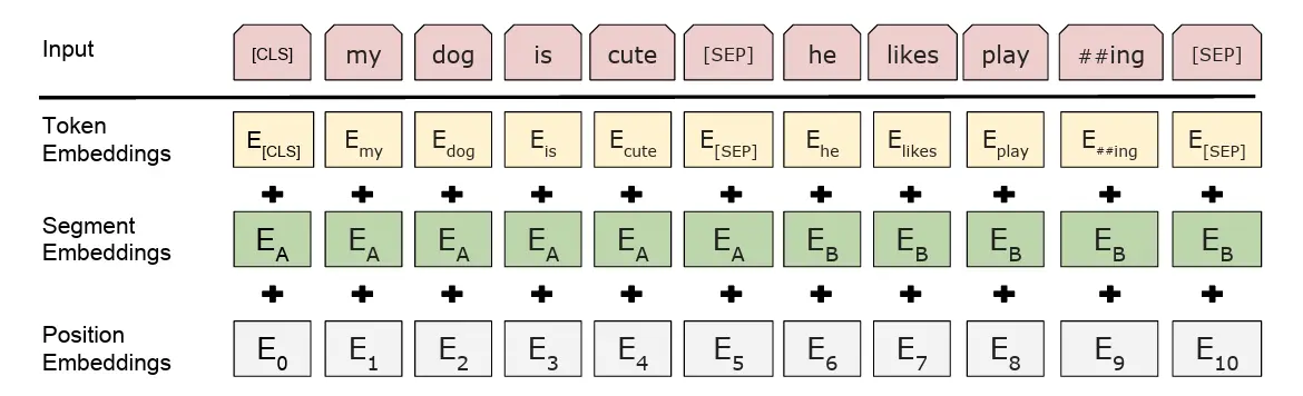 BERT는 세 개의 임베딩 레이어를 사용합니다.