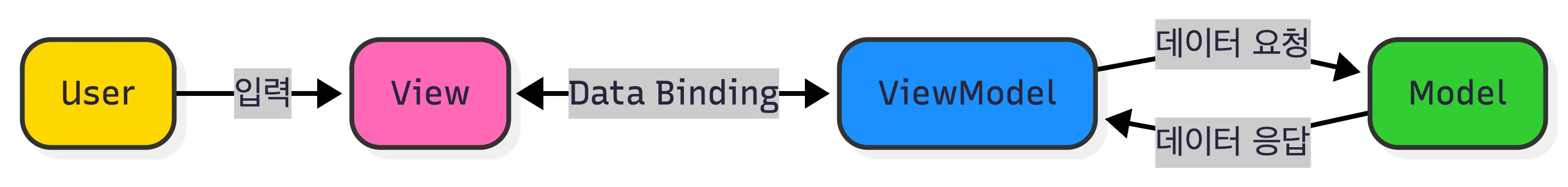 - ViewModel은 필요한 로직을 처리 후 Model을 변경합니다.